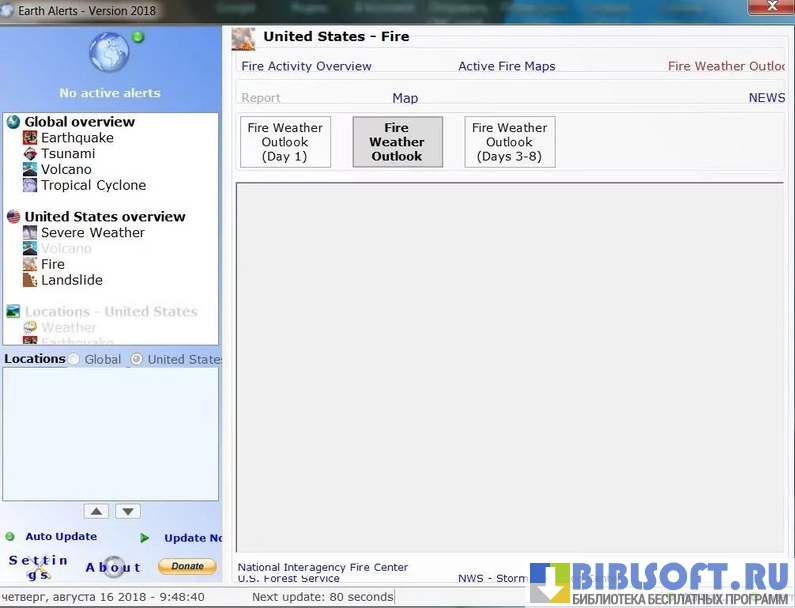 - Возможность получения самых свежих данных о катаклизмах в мире из достоверных источников, проверенных временем;