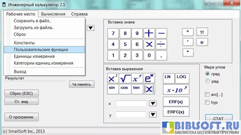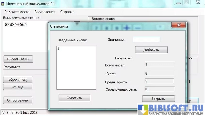 Утилита возводит в степень, извлекает корень, вычисляет логарифмы по любому основанию и работает с разными тригонометрическими функциями. Пользователь может определить среднеквадратическое отклонение, сумму чисел и среднее арифметическое.