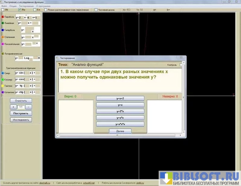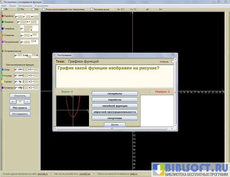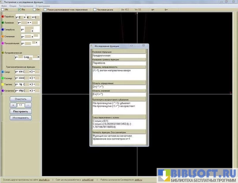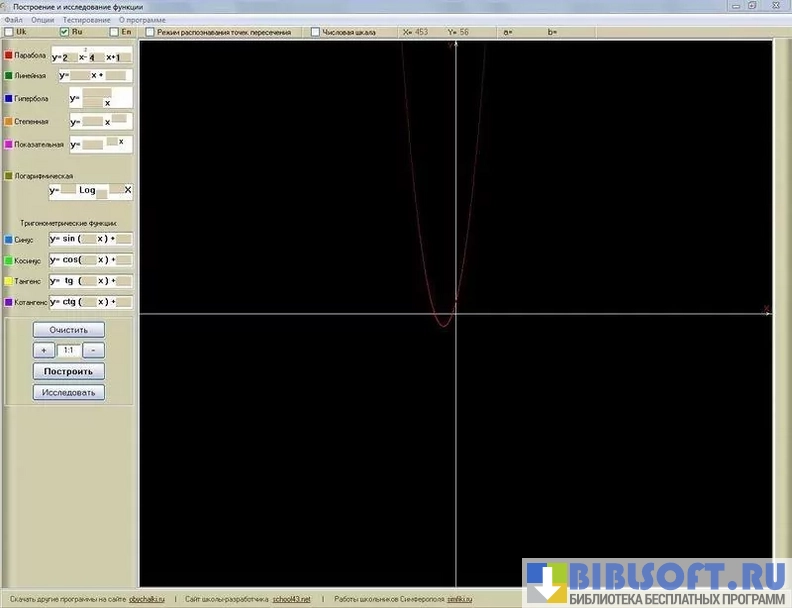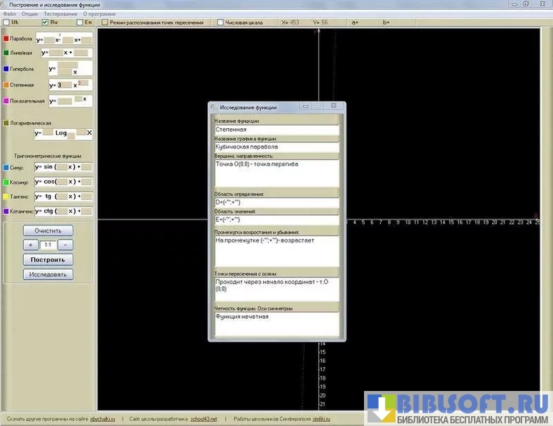 На уроках алгебры программа может применяться для наглядной демонстрации построения и размещения графиков алгебраических функций, подходит для индивидуальной исследовательской работы. Обеспечивает лучшее понимание изучаемой темы. Вписывая нужные коэффициенты в уравнение функции, пользователь получает возможность проследить закономерности в построении графика.