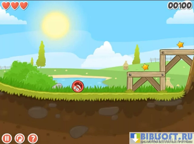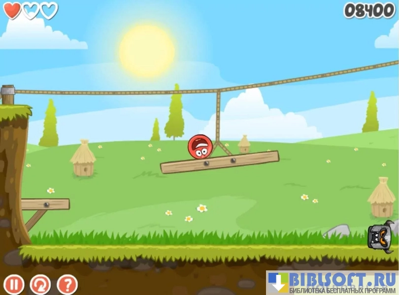 - красный шар катится и прыгает по локациям;