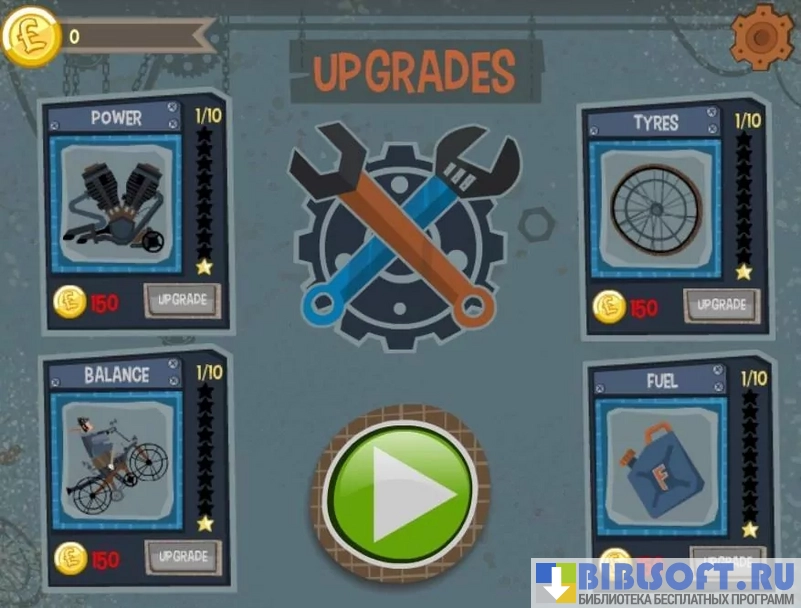 - Модернизируйте купленные транспортные средства в своем гараже, чтобы увеличить их скорость, управляемость, проходимость и иметь возможность выполнять более сложные трюки;