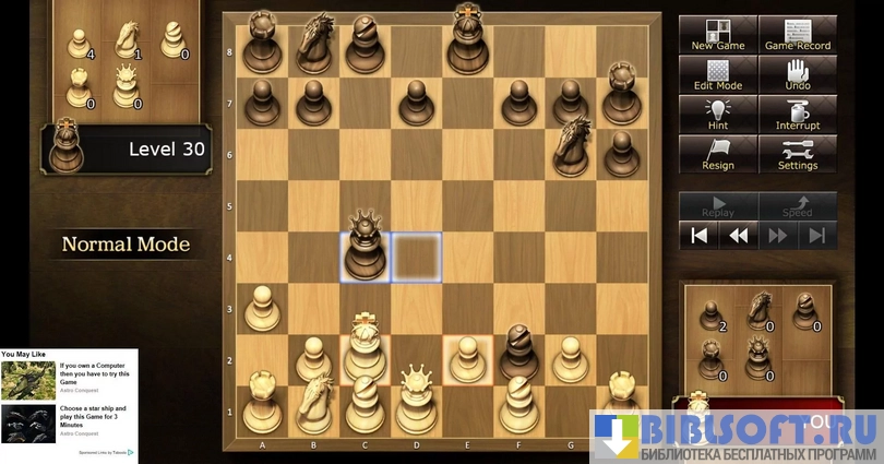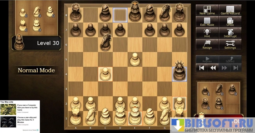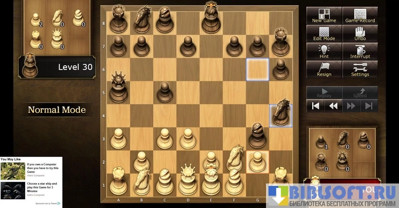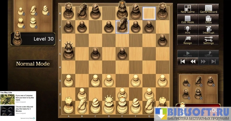 В режиме игры против компьютера разрешается выбирать уровень сложности, присваивая искусственному интеллекту рейтинг от 258 до 2300 баллов.