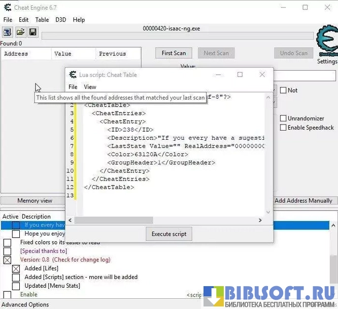 Cheat Engine – утилита с открытым кодом, способная сканировать память и выступать в роли НЕХ-редактора. Используется пользователями, желающими сделать прохождения игр более простым.
