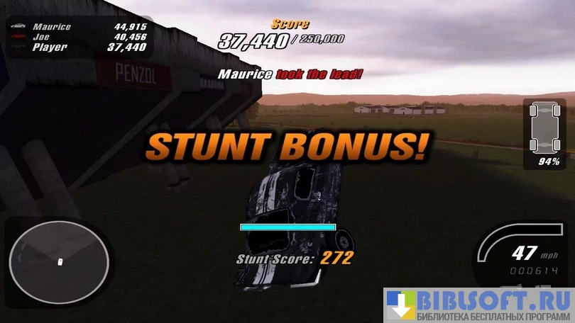 Crashday – компьютерный симулятор с гонками на выживание для одиночной и многопользовательской игры. Простой геймплей, понятный интерфейс и удобное управление машиной. Основные режимы – Stunt Show, LAN и Wrecking Match. Есть демо-версия, рассчитанная на 50 запусков. Симулятор предполагает 8 видов соревнований.