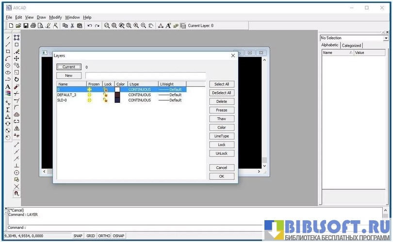 A9CAD – CAD-редактор для Windows, позволяющий создавать и редактировать чертежи. Редактор не имеет такого мощного функционала, как аналоги, но его возможностей достаточно для работы с несложными чертежами.