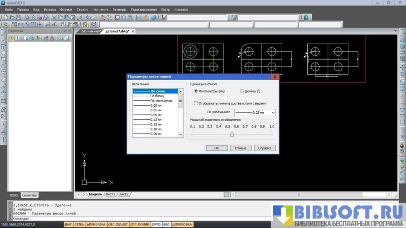 nanoCAD – разработка российских программистов, являющая собой универсальную САПР-платформу со всеми необходимыми инструментами для создания и проектирования чертежей. Программа поддерживает файлы разных версий AutoCAD, что дает возможность редактировать чертежи в других программах без потери важных данных.
