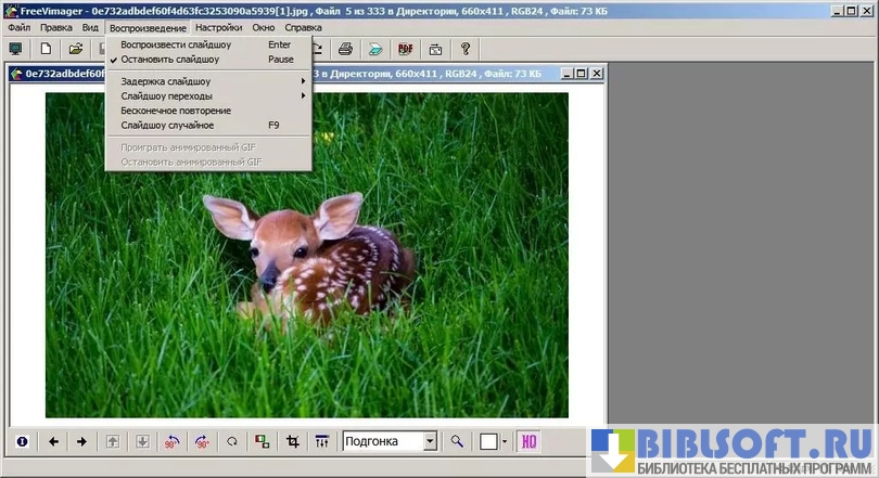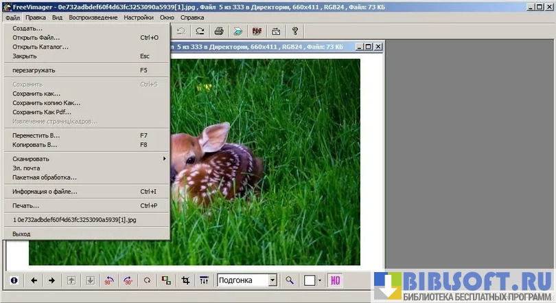 FreeVimager – симбиоз графического редактора и интерактивного мультимедиа-плеера для Windows. Позволяет просматривать и редактировать .GIF-, .JPEG-, .PNG-, .BMP-, .TIFF- (многостраничные), .EMF- .PCX- и .PDF-файлы.