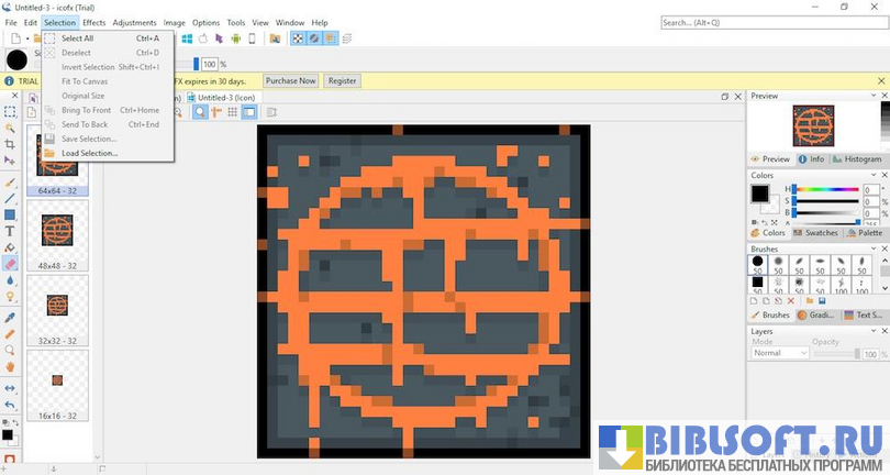Чтобы получить возможность редактирования мельчайших деталей изображения, рабочую область IcoFX можно значительно увеличить (до невероятных 10000%). В процессе создания и изменения значков пользователь сможет работать одновременно с несколькими выбранными файлами.