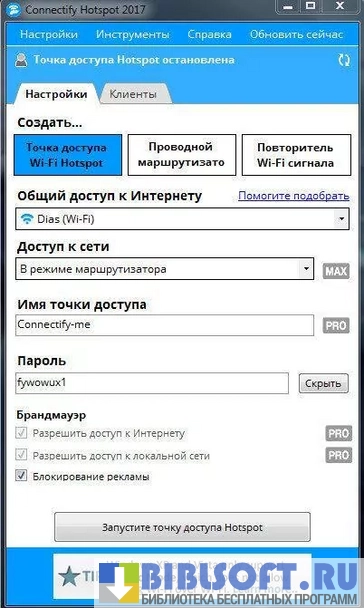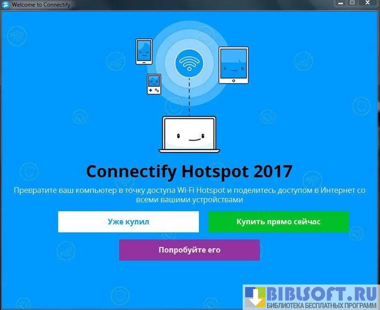 Connectify – небольшая утилита для превращения компьютера, оборудованного Wi-Fi-картой или Wi-Fi-адаптером, в точку раздачи беспроводного Интернета. С ее помощью можно в считанные секунды создать беспроводную сеть с организацией доступа для портативных гаджетов и ноутбуков.