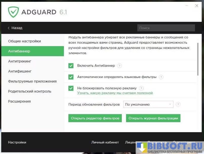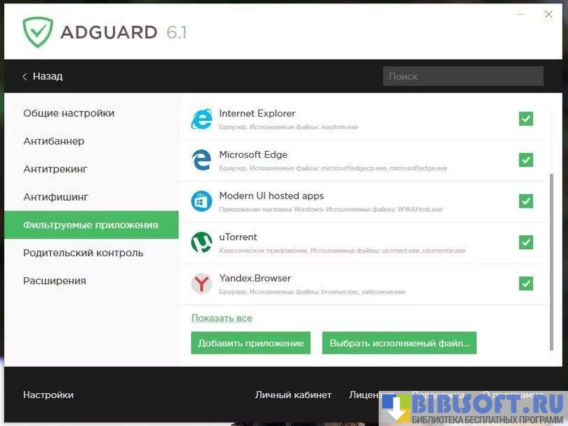 Adguard можно установить в качестве автономной утилиты для Windows или как дополнение к браузеру, поддерживающему такую функцию. Для блокировки применяется сортировка по адресам сайтов, отключение с помощью CSS и фильтрация программного кода.