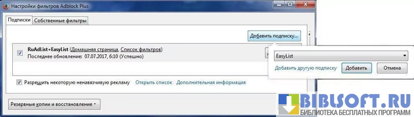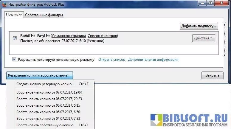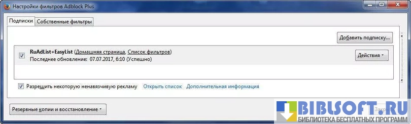 Функционал Adblock Plus