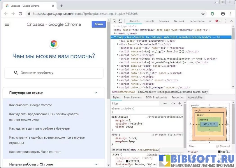 - Подгружает Javascrit-элементы в специальный «движок» V8, и интерпретирует их с максимально возможной на сегодняшний день скоростью;