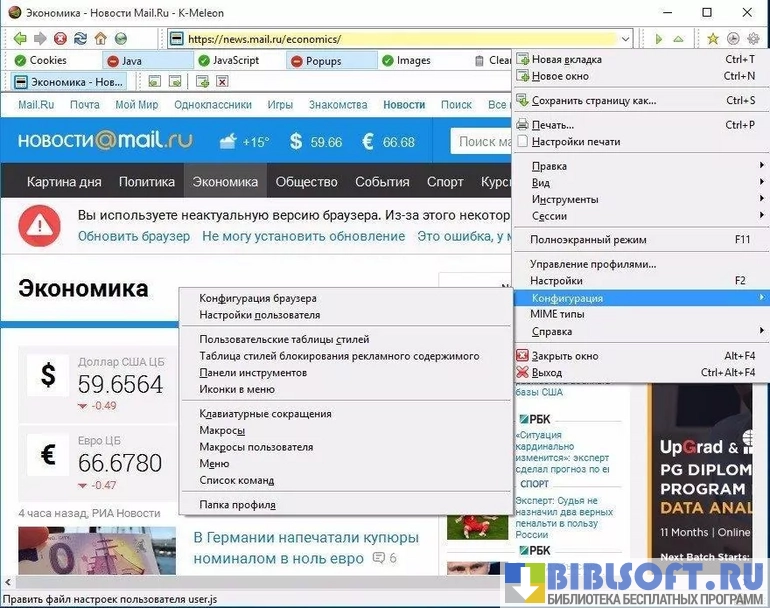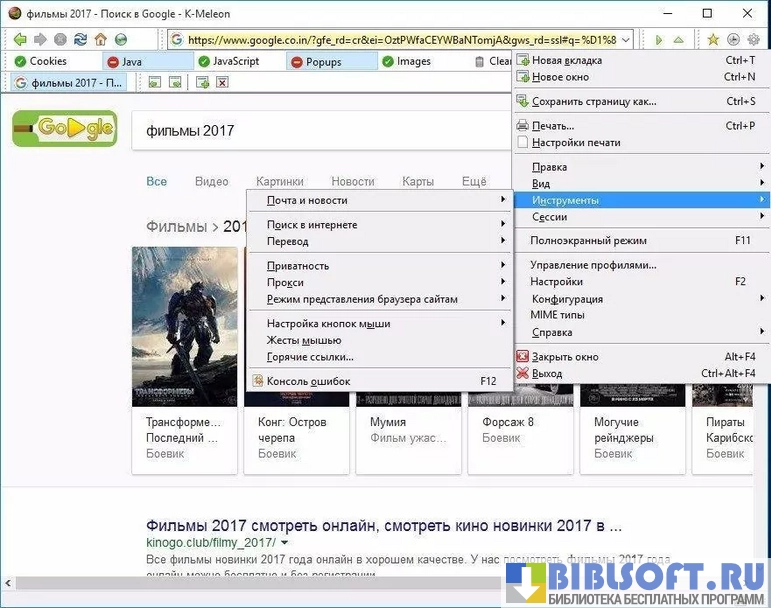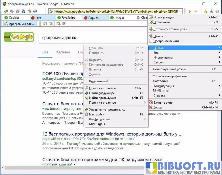 Браузер K-Meleon использует минимальное количество системных ресурсов и имеет множество настроек, что делает его хорошей альтернативой другим браузерам. По умолчанию браузер использует анонимную поисковую систему DuckDuckGo, которая может быть заменена любой другой поисковой системой.