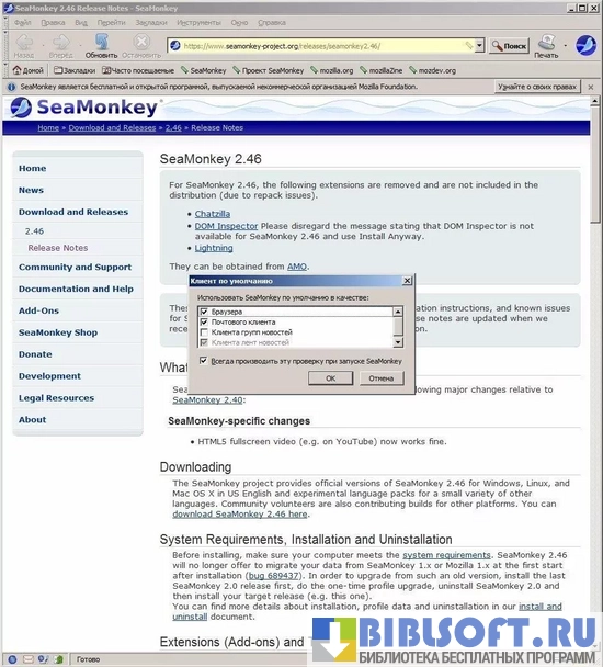 SeaMonkey – пакет программ для работы в Интернете, распространяемый бесплатно. Координаторы разработки выделились из Mozilla Foundation в отдельный проект. Работает на движке Gecko.