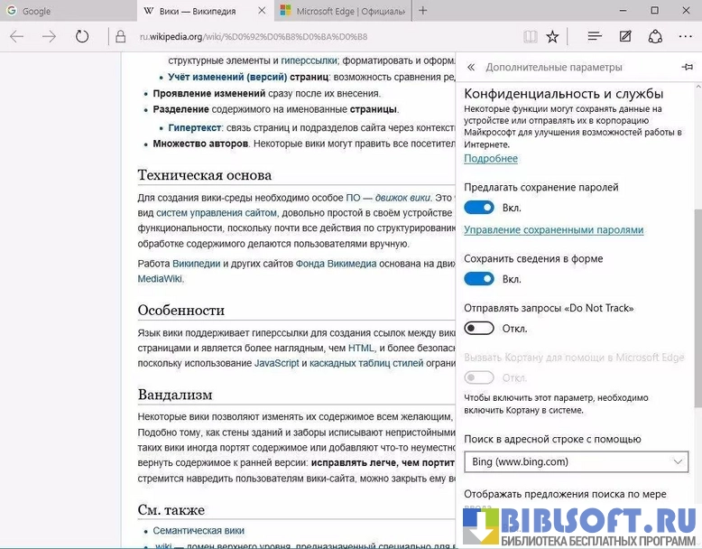 - Средства для приватности и безопасности: блокировка трекеров, SmartScreen для защиты от фишинга и вредоносных сайтов, мониторинг утечек паролей и возможность использования Microsoft Defender SmartScreen.