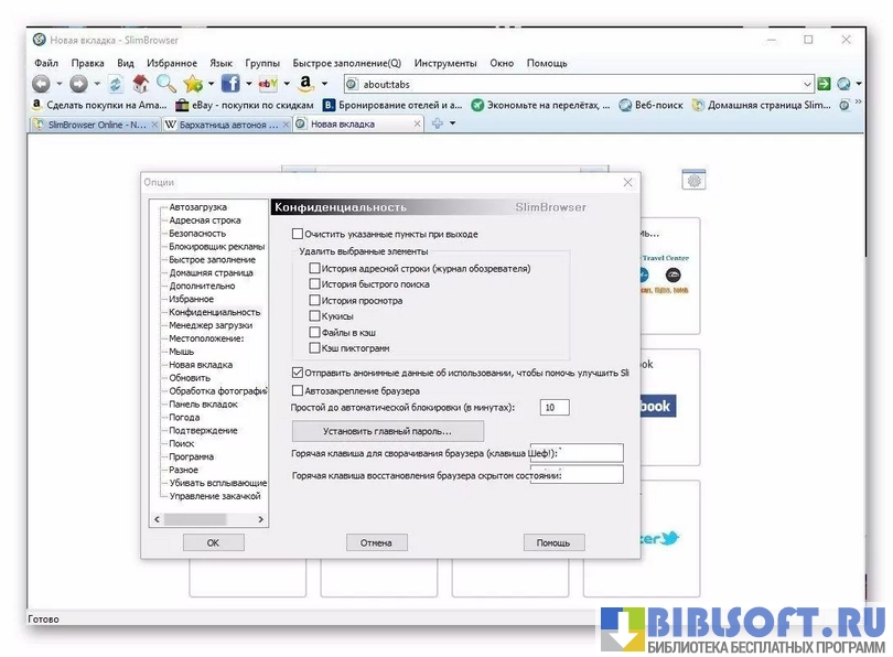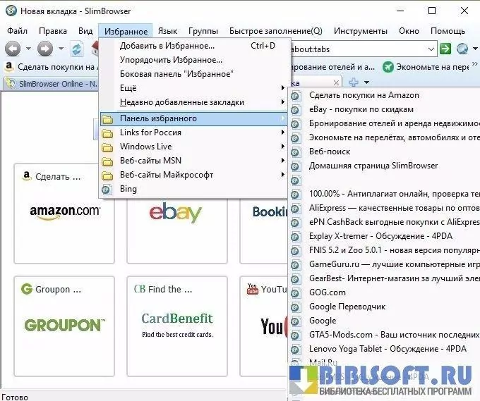 SlimBrowser - компактный и функционально насыщенный веб-браузер для Windows, разработанный компанией FlashPeak, ориентированный на пользователей, которым важны скорость запуска, встроенные утилиты и низкое потребление системных ресурсов. Программа сочетает в себе привычный интерфейс с набором инструментов для работы с загрузками, блокировки всплывающих окон, автозаполнения форм и управления вкладками, сохраняя при этом совместимость с компонентами Internet Explorer на уровне движка отображения страниц.
