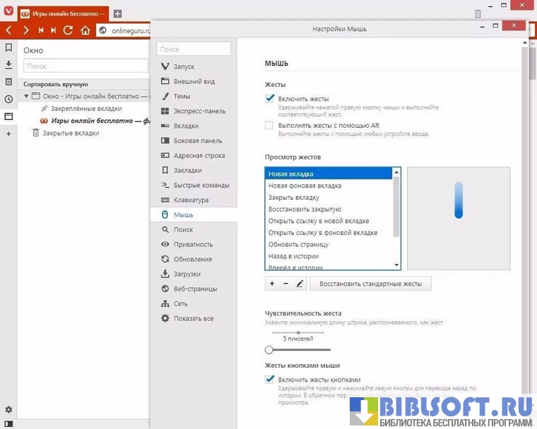 - полноценно управлять обозревателем клавиатурой или мышью, используя «горячие» клавиши и жесты соответственно;
