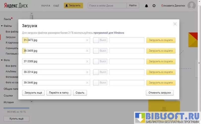 - загрузка файлов размером до 10 Гб;