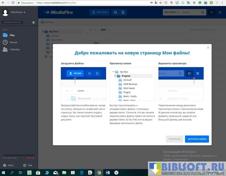 MediaFire - приложение для хранения информации на выделенных серверах. Перемещайте любые файлы на облачные сервисы и делитесь ими с друзьями. Используйте последние версии браузеров для скачивания файлов на любых устройствах и системах. Расширяйте объём, доступный для заполнения файлами, привлекая новых активных пользователей