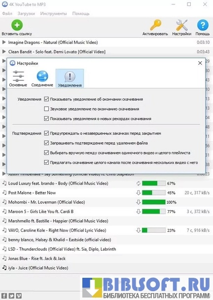4K YouTube to MP3 – симбиоз загрузчика музыки с сервисов видеообмена и автоматизированного многофункционального аудиоконвертера для Windows. Может импортировать аудиодорожки из воспроизводимых онлайн-видео и сохранять их в .MP3-, .M4A- и .OGG-форматах.