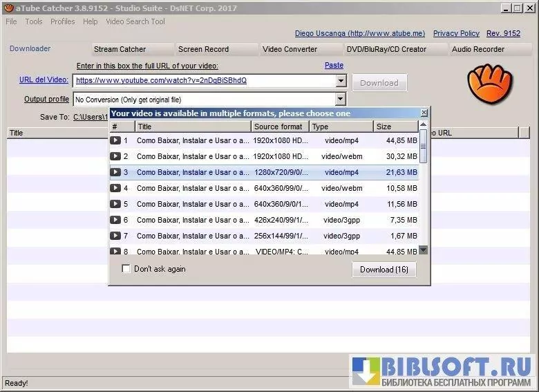Работая с aTube Catcher, можно скачивать одновременно несколько видео. Программа предоставляет своим пользователям возможность не только преобразовывать видеофайлы в другие форматы, но и создавать VCD, DVD и Blu-ray диски из записываемого или загружаемого контента. В утилите есть 9 удобных функций: