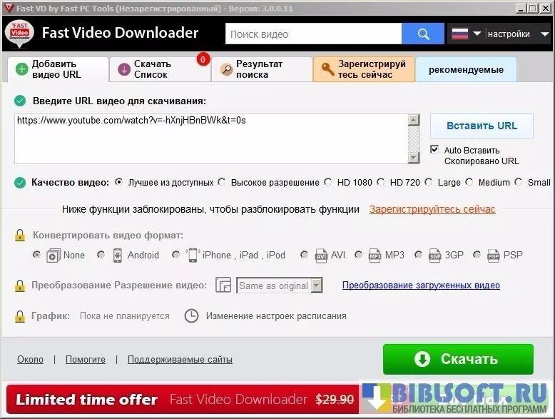 - Высокая скорость осуществляемых загрузок и быстрая конвертация выбранного видео.