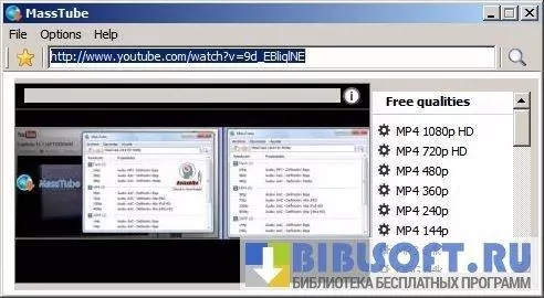 После загрузки и установки MassTube, в программу нужно вставить скопированный URL-адрес YouTube и щелкнуть значок поиска. Утилита отобразит все доступные форматы видео — пользователю останется только выбрать нужный ему: после этого начнется само скачивание и конвертация.