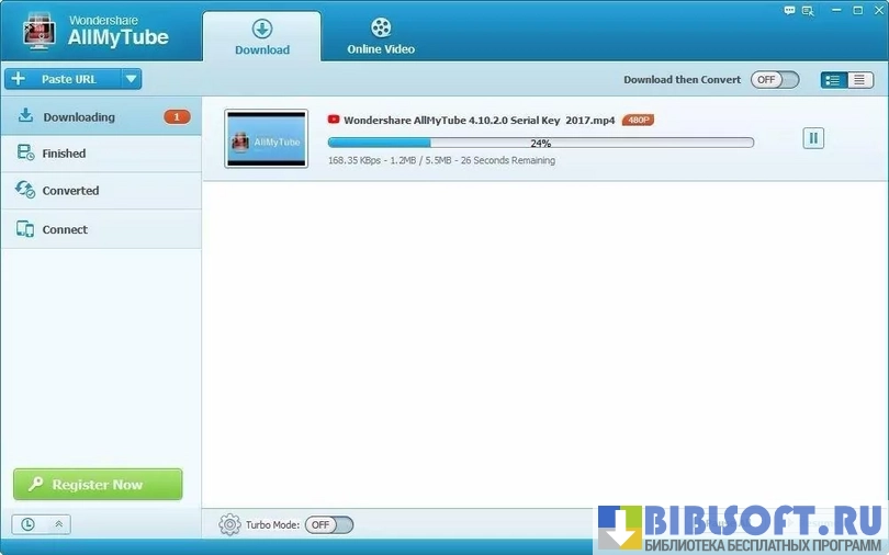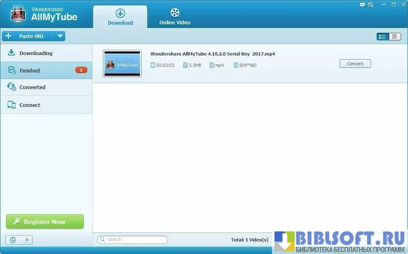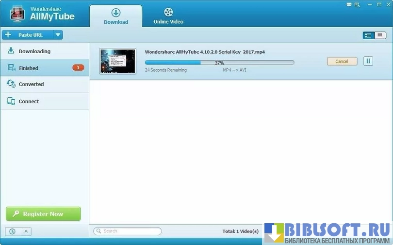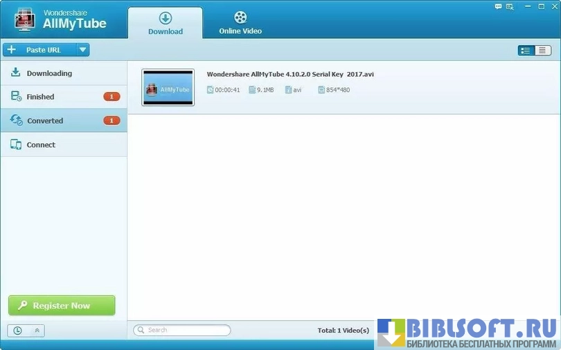Wondershare AllMyTube может автоматически конвертировать видео сразу после его загрузки.