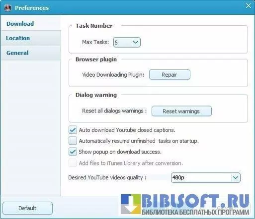 Программа умеет быстро осуществлять скачивание видео с выбранного сайта. Утилита умеет преобразовывать загруженные видео в 16 различных форматов и оптимизировать их для воспроизведения на более чем 100 устройствах.