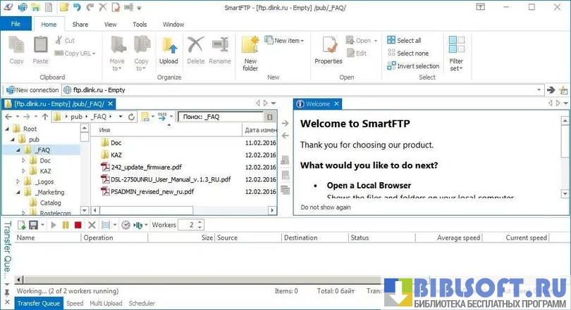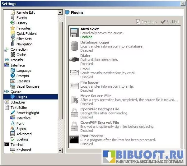 Умеет осуществлять параллельное подключение в «несколько потоков» в т. ч. – к одному и тому же FTP-серверу. Имеет собственный графический визуализатор для предварительного просмотра файлов. Может «синхронизировать» указанные «локальные» и «удаленные» директории между собой и создавать «закладки» в интерфейсе. Поддерживает технологию «интерактивного перетаскивания» файлов Drag-n-Drop.