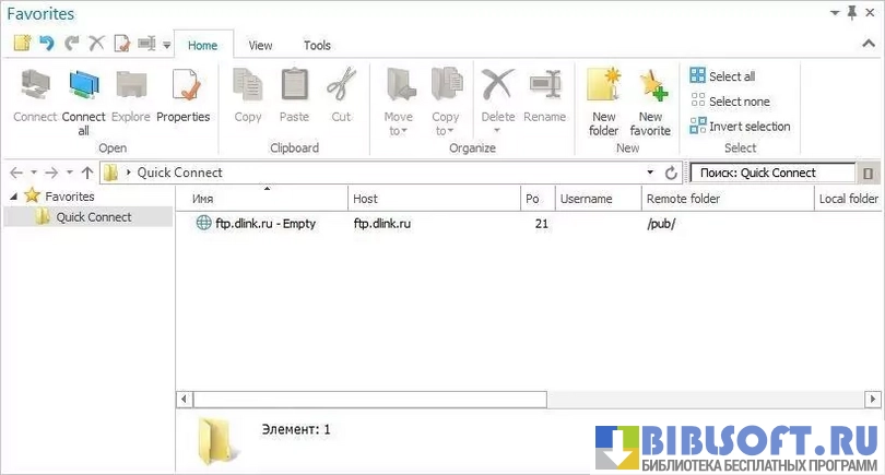 - «Запоминает» открытые «удаленную» и/или «локальную» директорию и необходимые для доступа к ним реквизиты в виде «закладки», автоматически переходит и авторизуется в них при инициации «закладки»;