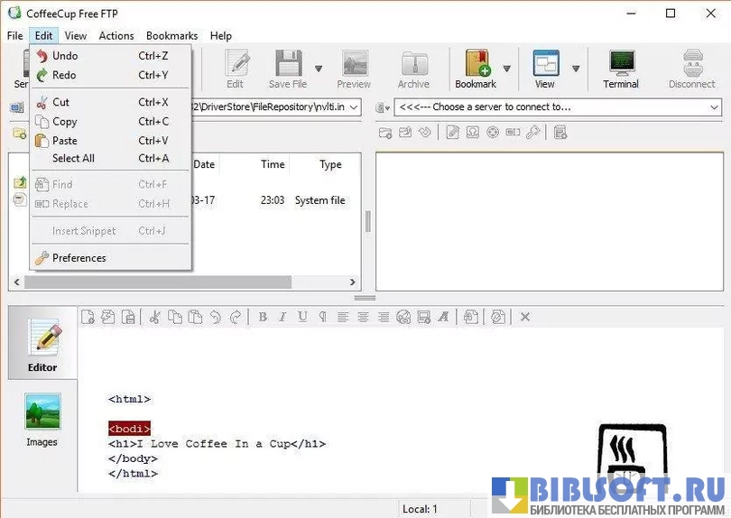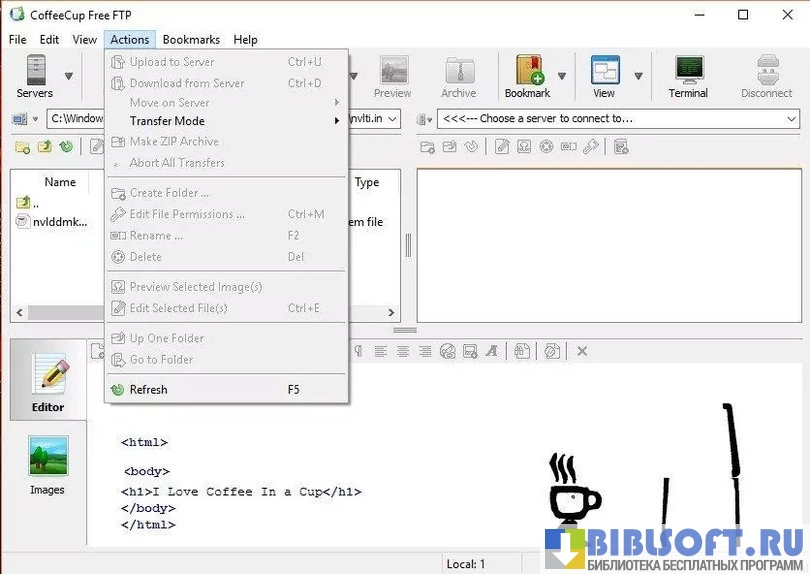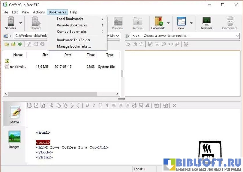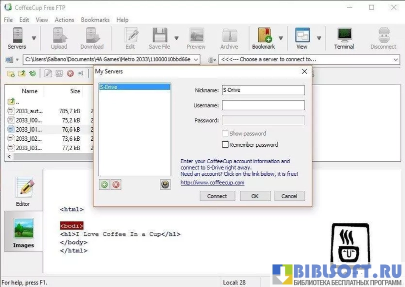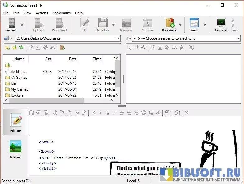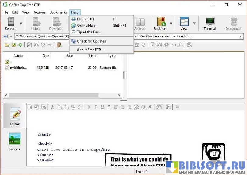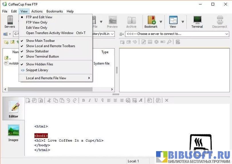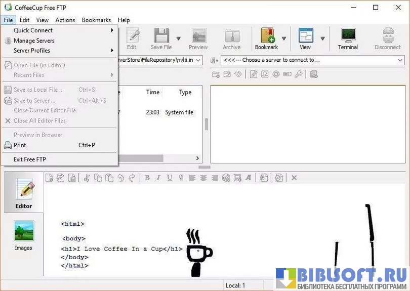 CoffeeCup Free FTP – бесплатный FTP-клиент для использования в ОС Windows. Программа, в код которой не добавлено ничего лишнего – только возможность загрузки и редактирования файлов на сервере.