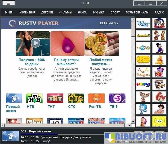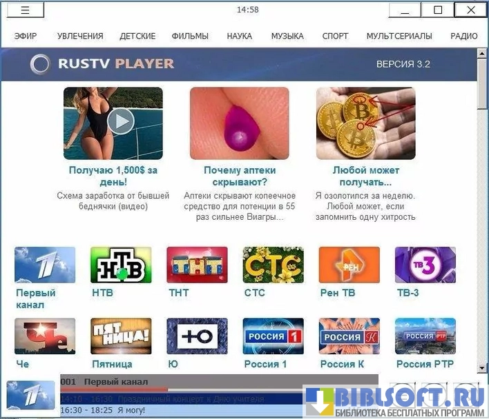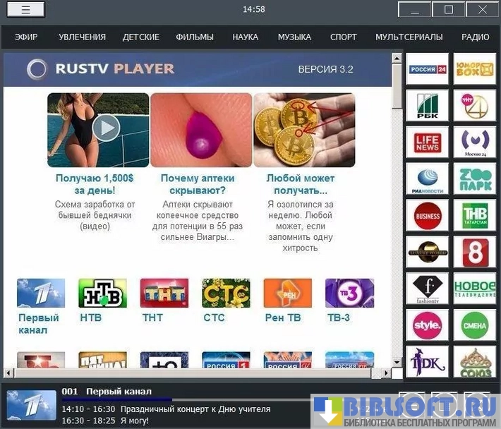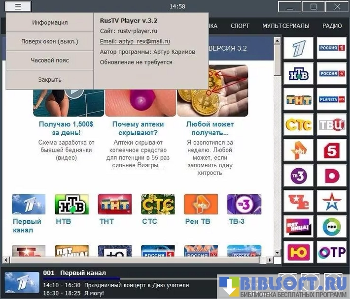 RusTV Player программа, превращающая ваш компьютер в настоящий телевизор.
