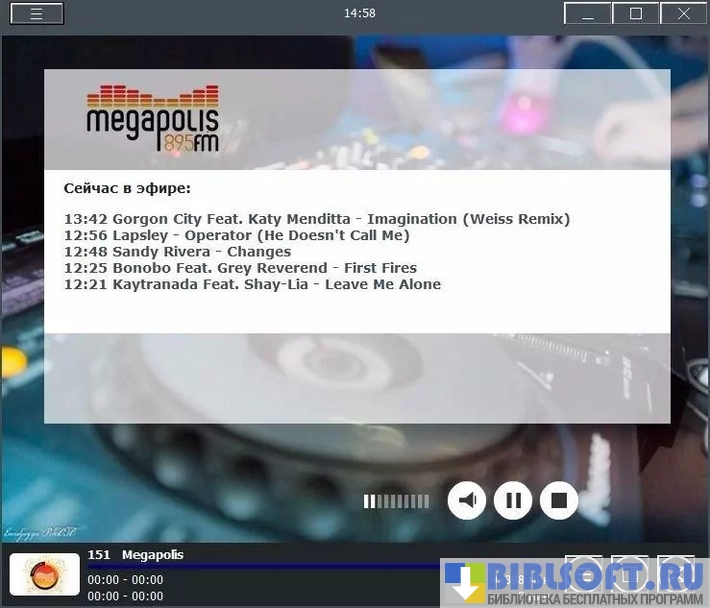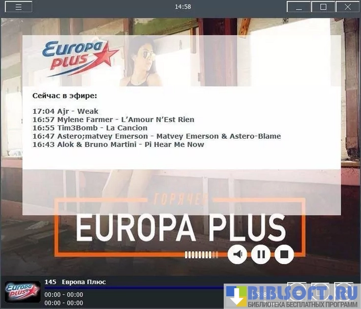 В плеере возможен полноэкранный просмотр выбранных телевизионных программ и опция "поверх всех окон".