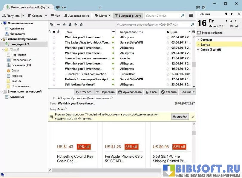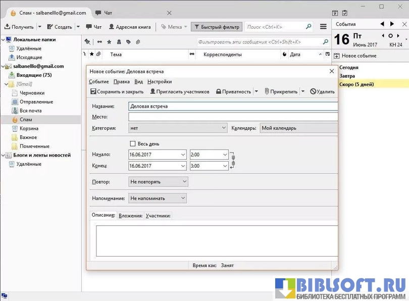 Mozilla Thunderbird – кроссплатформенное приложение для обработки электронной почты и RSS-трансляций. Расширение Lightnight добавляет в программу календарь. Программа обладает открытым кодом и бесплатно распространяется компанией Mozilla Foundation.