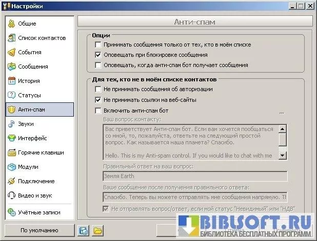 - защита от спама со стороны пользователей, не добавленных в контакт-лист;