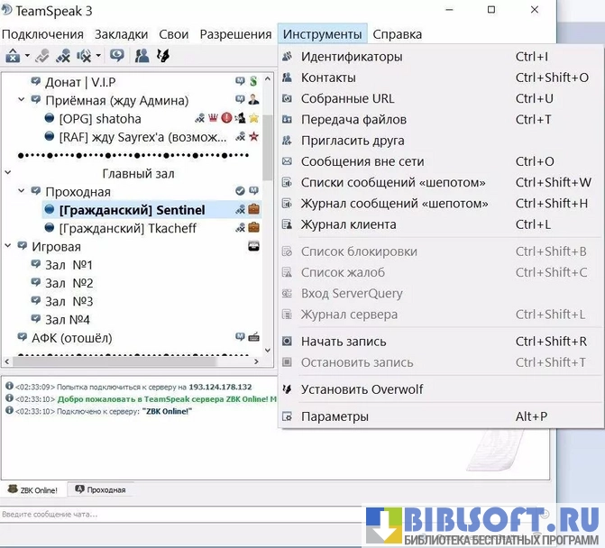 Функции программы Teamspeak