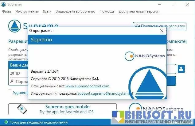 Supremo – утилита для удаленного управления другим компьютером на платформе Windows. Программа не требует установки и готова к работе сразу же после распаковки. Дополнительных настроек роутера и антивирусного ПО проводить не нужно.