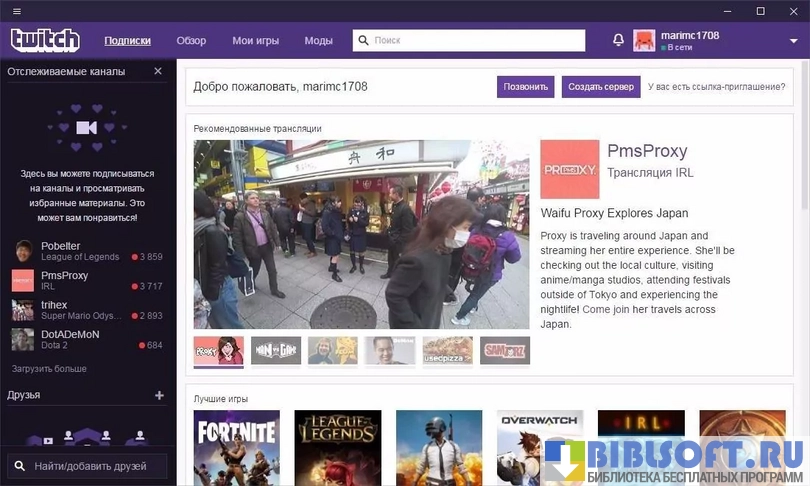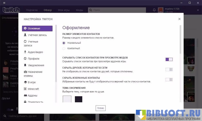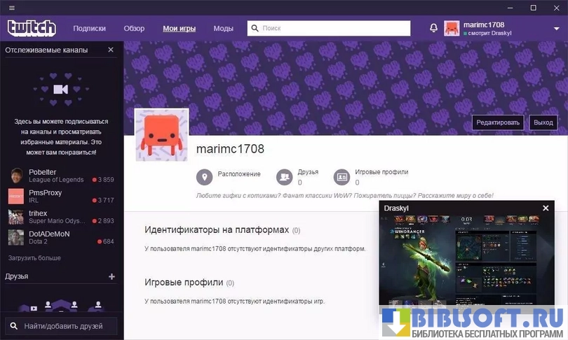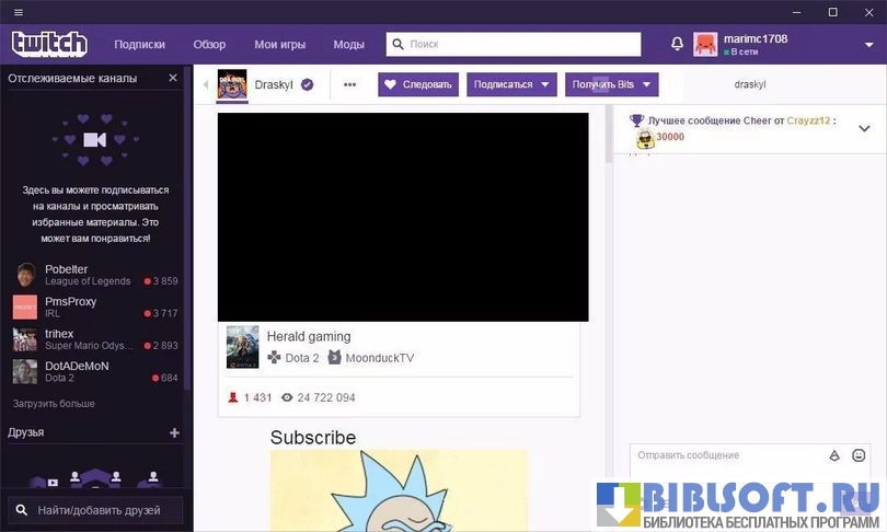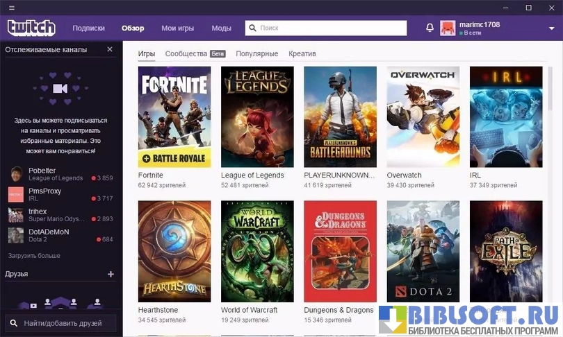Twitch для Windows - клиент одноименного сервиса для просмотра потокового игрового видео и прямых трансляций киберспортивных турниров. Владельцам аккаунтов на Twitch.TV не потребуется вносить заново информацию о себе ввиду того, что она будет синхронизирована с данным сервисом. Присутствует возможность создать, как игровой профиль, так и обзавестись друзьями, среди тех, кто уже является пользователем системы. Общение с друзьями может вестись посредством видеоконференции, с максимальным количеством участников до пяти человек. Это дает возможность транслировать экраны пользователей в HD качестве.