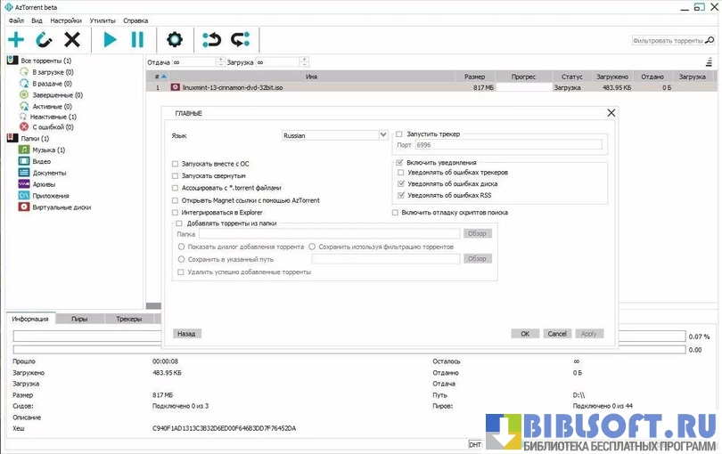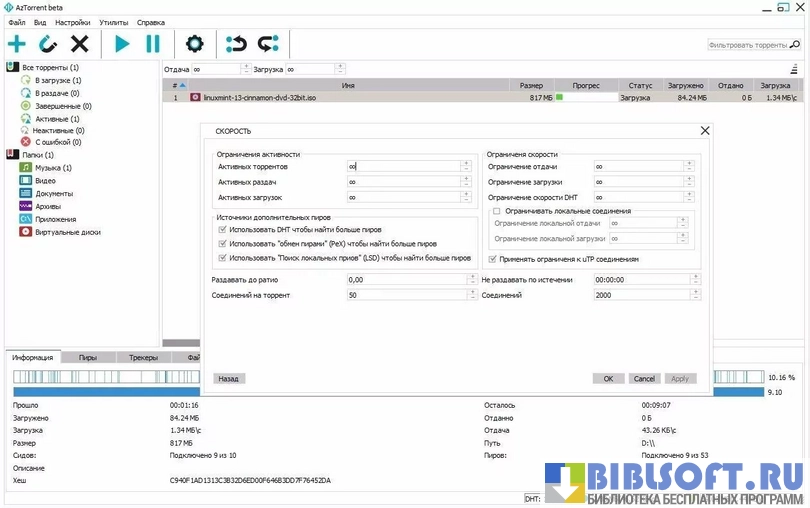 AzTorrent – торрент клиент, обладающий всем необходимым для комфортной загрузки интересующих вас фильмов, игр и прочего через файлообменный протокол BitTorrent.