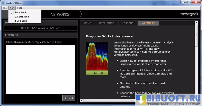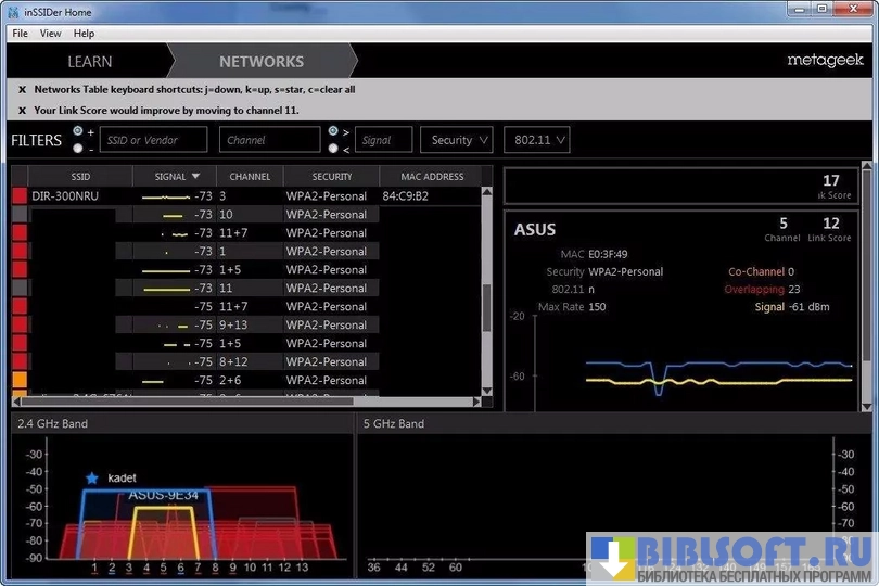 InSSIDer – инструмент для диагностики и редактирования настроек доступный для подключения сетей Wi-Fi.