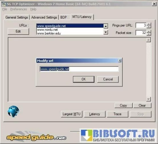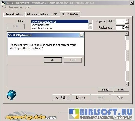 - автоматическая настройка сети программой (расчет оптимальных сетевых параметров для улучшения производительности интернет-соединения);