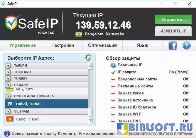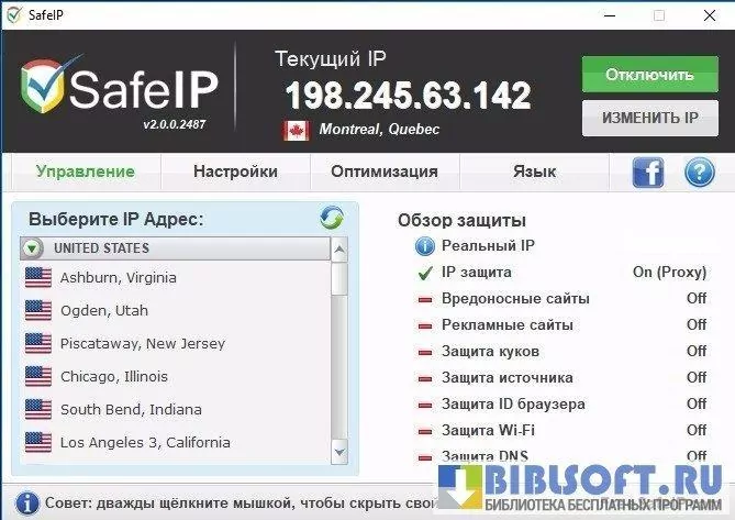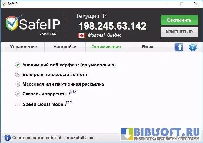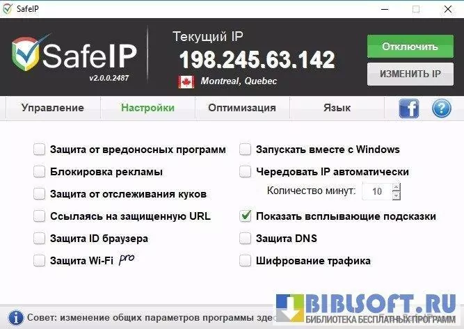 SafeIP – программа анонимайзер, позволяющая пользователю скрыть реальный IP используя доступные прокси-сервера.