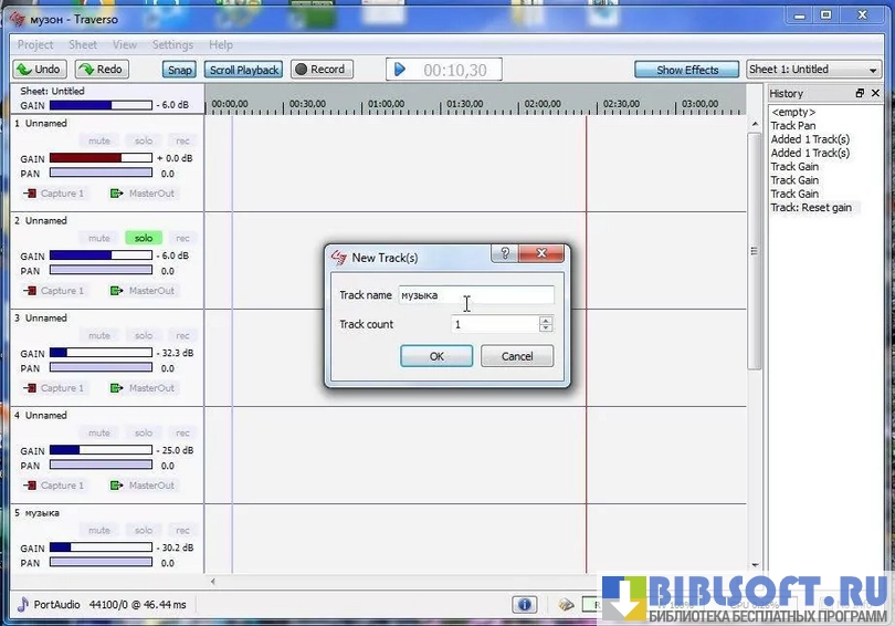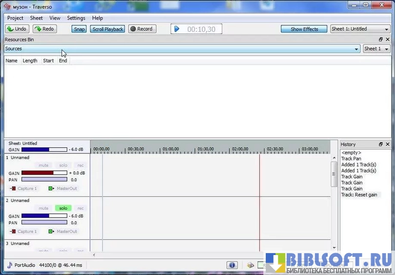 Traverso DAW – мультиплатформенный аудиоредактор для Windows. Поддерживает функцию многопоточного редактирования аудиофайлов, причем количество потоков ограничивается исключительно ресурсом «железа». Умеет конвертировать сэмплы в режиме «реального времени».