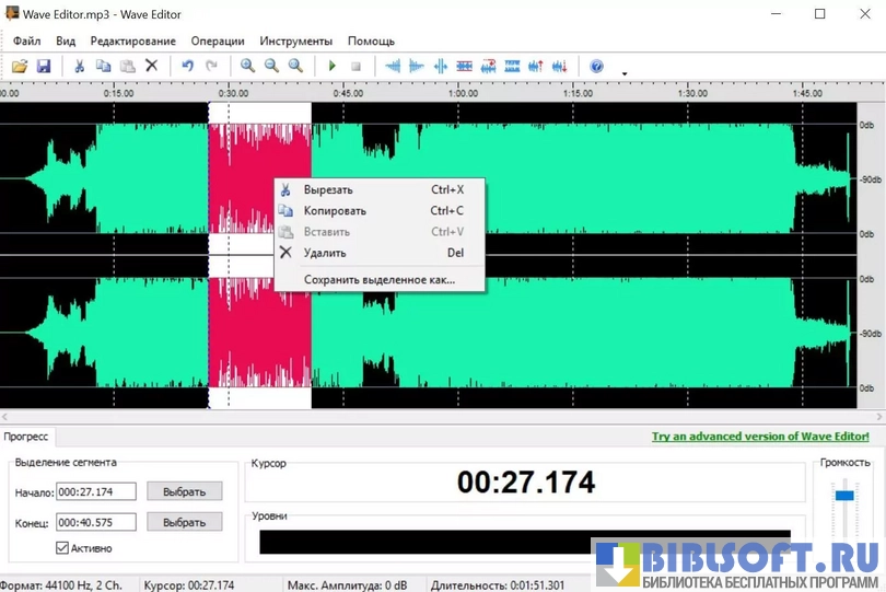 - поддержка технологии сохранения выделенных сегментов для создания отдельных аудиофайлов без удаления исходного файла.