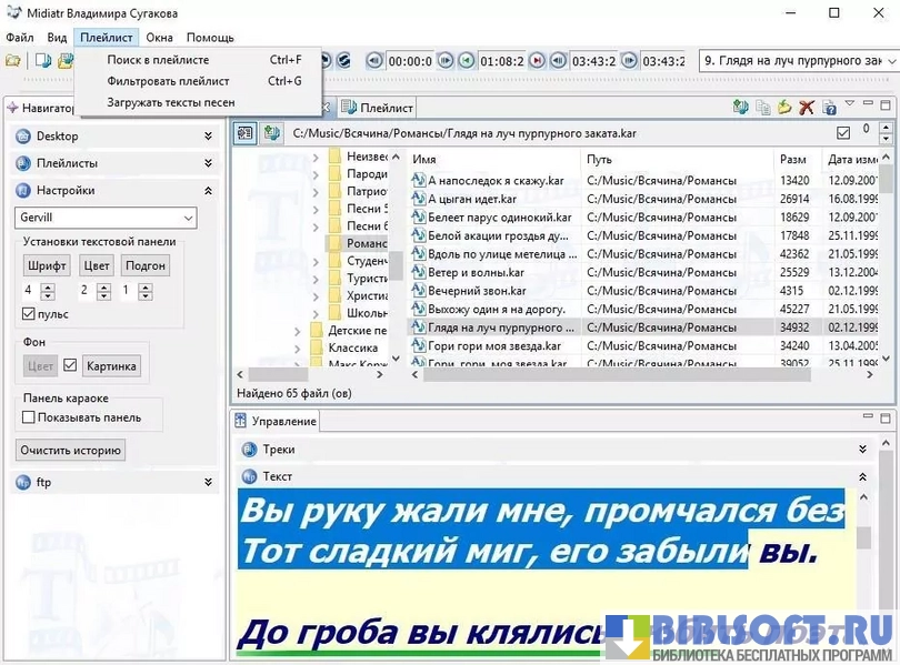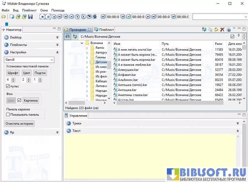 - Гибко-настраиваемая система поиска данных по содержимому .mid- и .kar-файлов;
