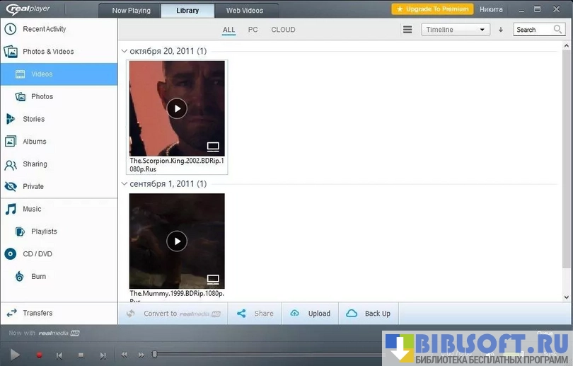 RealPlayer Cloud – медиапроигрыватель от создателей RealPlayer , позволяющий не только проигрывать локальные аудио- и видеофайлы, но еще и загружать медиа в облачное хранилище с дальнейшим предоставлением доступа к нему из любого места на любых устройствах.