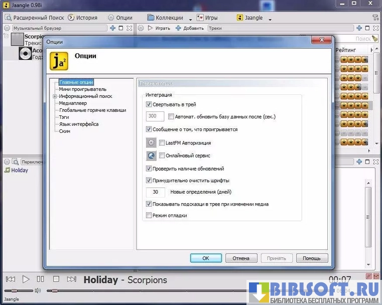 Эта программа нетребовательна к ресурсам компьютера и запускается на любой 32-разрядной версии Windows, начиная с XP. Jaangle имеет множество настроек, позволяющих пользователю настроить его «под себя»: сменные скины, редактор хоткеев, простой эквалайзер с несколькими готовыми пресетами.