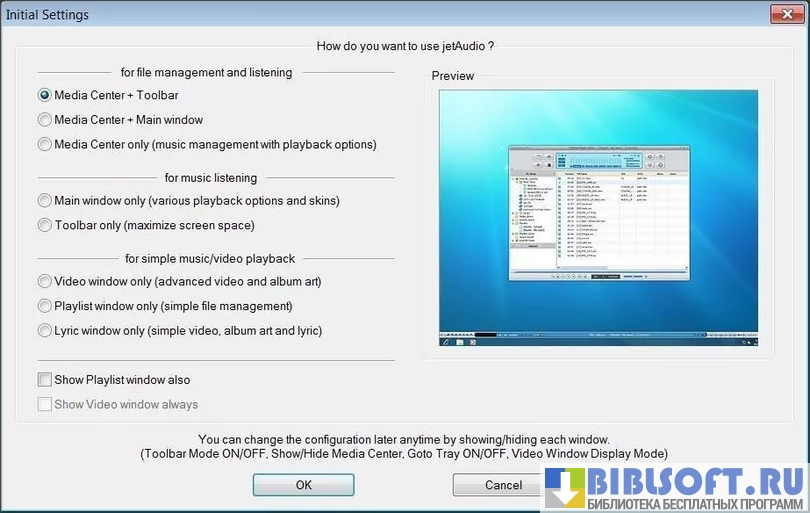 - полный набор инструментов для работы с плейлистами, аудио- и видеофайлами разных форматов;
