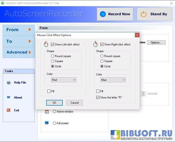 - выделение курсора мыши заливной или обводкой, а также обозначение кликов эффектами;